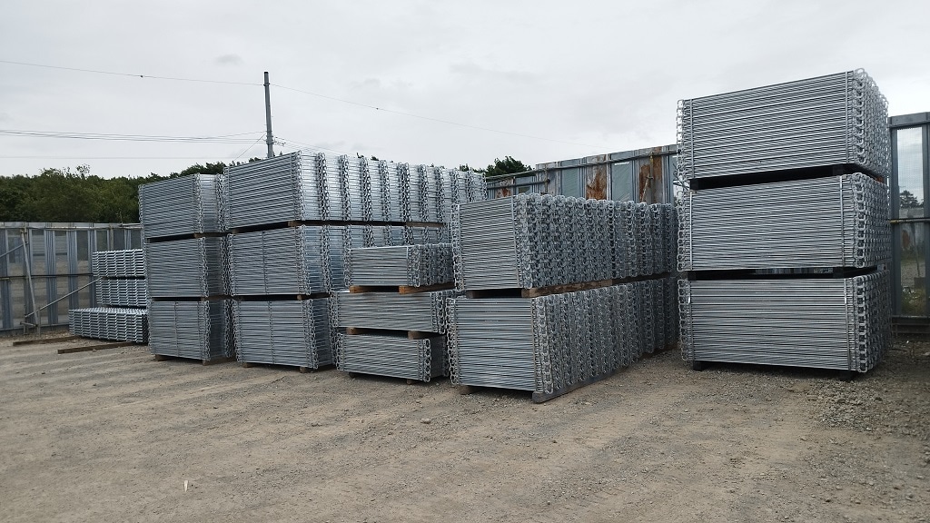 くさび緊結式足場の「メイン材」と、現場必須の メッシュシート3種類 を常備。